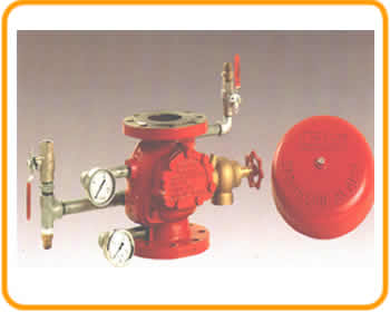 Puestos de control: Puesto de control para sprinklers, en sistemas de tubería húmeda, disponibles en 3” ( 90 mm ), 4” ( 100 mm ) y 6” ( 150 mm ), compuestos por: - Válvula de alarma homologada FM y LPC, con bridas DIN en la entrada y salida, y clapeta con sistema de despresurización que elimina la necesidad de montar cámara de retardo. - Motor de agua y gong en aleación de aluminio, homologados FM. - Trim, compuesto por manómetros, elementos para salida de drenaje, salida de línea de alarma, y salida para línea de prueba. - Válvula de paso, tipo mariposa para montar entre bridas a la entrada de la válvula de alarma. |